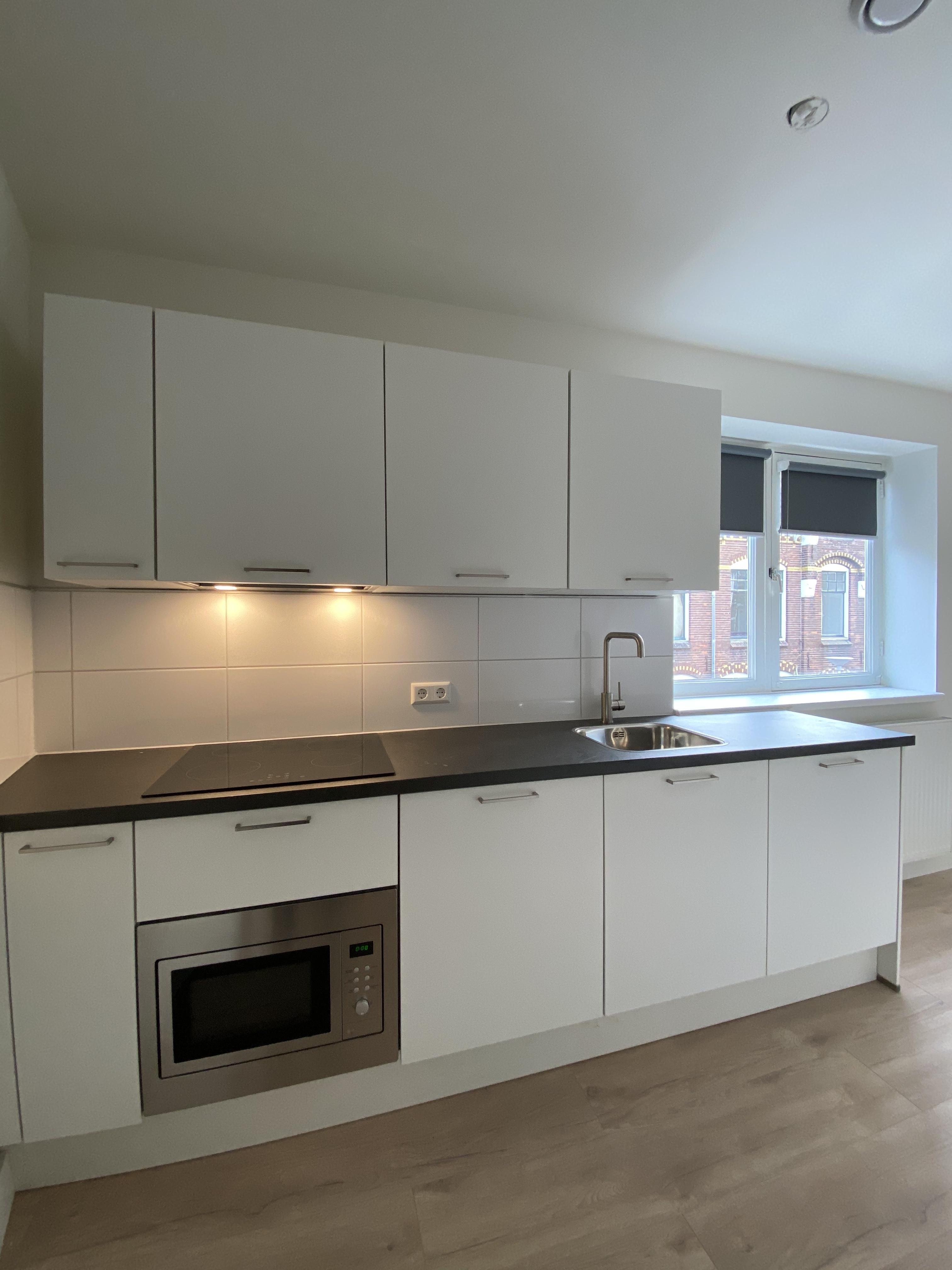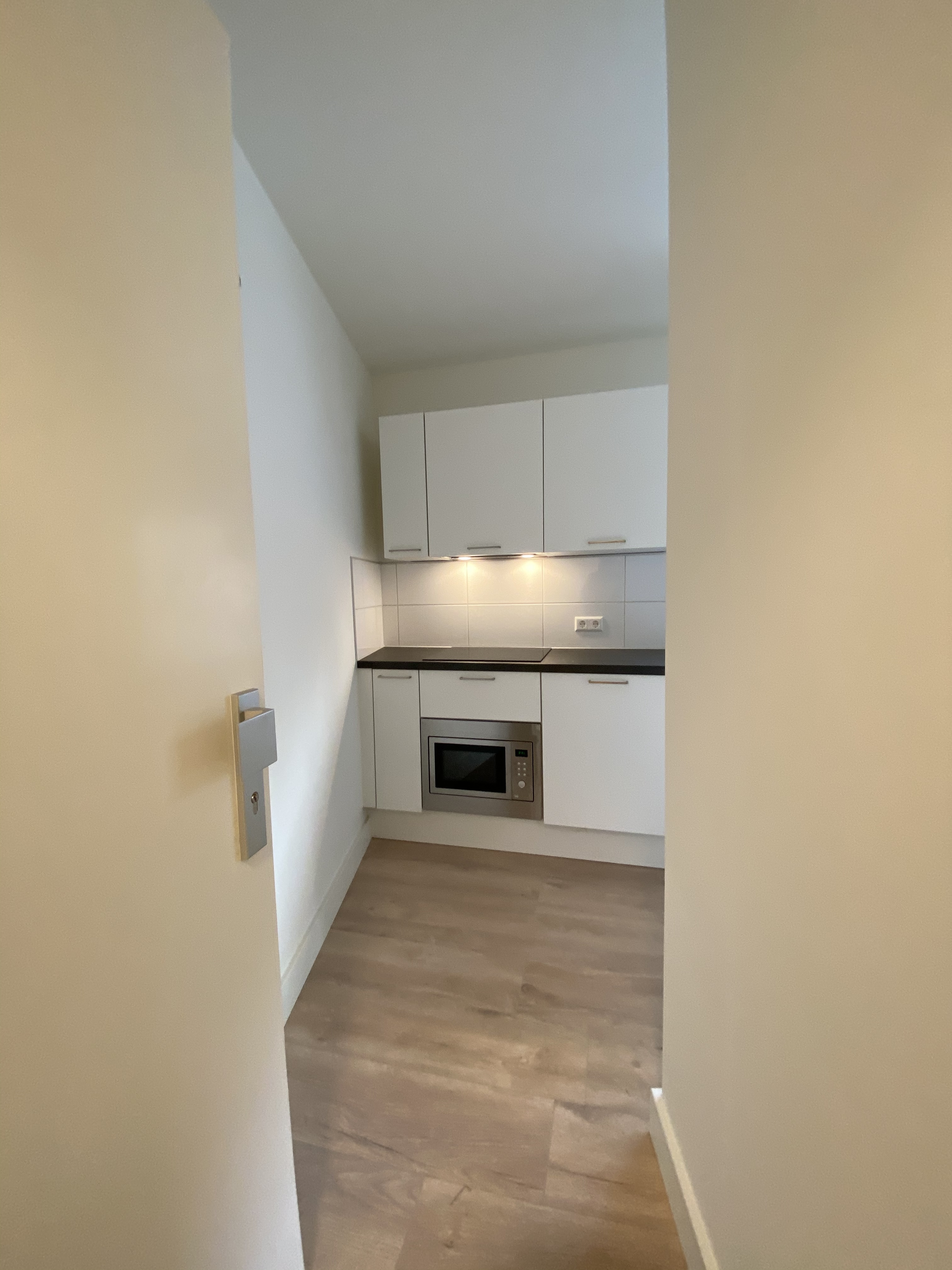 Het appartement is voorzien van een eigen hal/entree, slaapkamer en woonkamer met open-keuken. De luxe keuken beschikt over alle gewenste apparatuur (koelkast met vriesvak, combimagnetron, vaatwasser, inductiekookplaat en wasemkap) en voldoende opbergruimte middels bovenkastjes. Het sanitair bestaat uit o.a. zwevend toilet, douche en een wastafelmeubel. Het appartement is voorzien van laminaatvloer, (rol)gordijnen en wasmachine. Kortom u kunt uw meubels erin zetten en er gaan wonen!